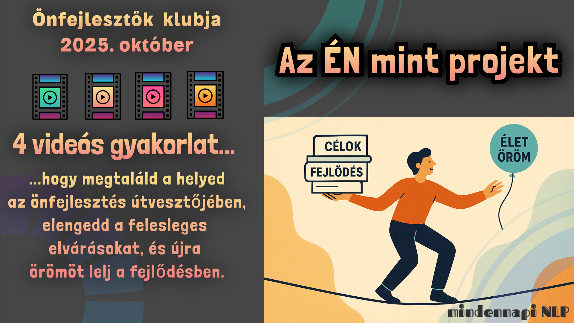 Októberben az Önfejlesztők Klubja egy rendhagyó, de felszabadító témával foglalkozik: „Az én, mint projekt – hogyan ne fejleszd magad túl?” Ebben a hónapban arra hívunk, hogy nézz rá más szemmel a belső folyamataidra: vajon mikor válik az önfejlesztés kényszerré, és a tudatosság egy újabb teljesítendő feladattá?